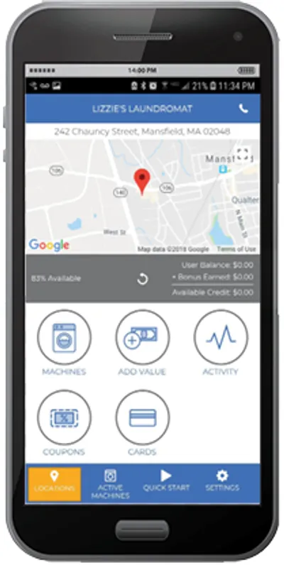 Start any machine directly from the app by scanning the code on the machines’s card reader.